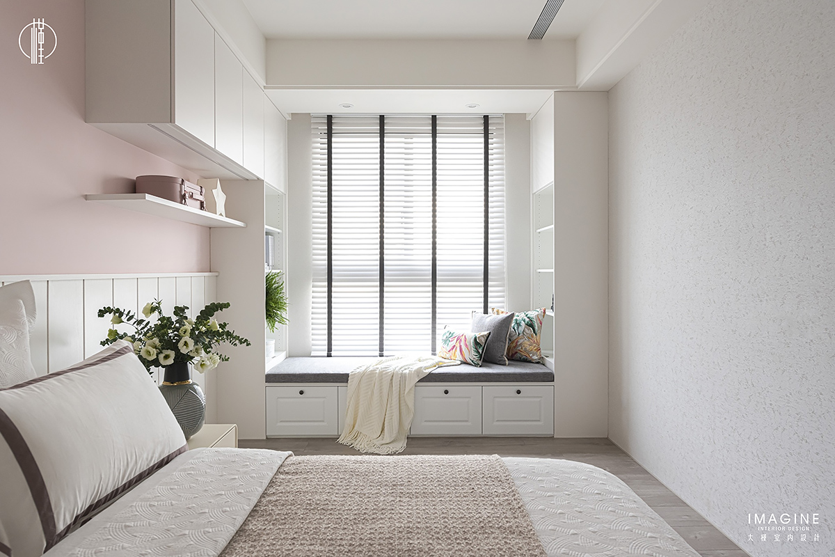 另一間的女孩房,白色亮潔,用粉彩裝飾,跳出活躍亮眼的青春。