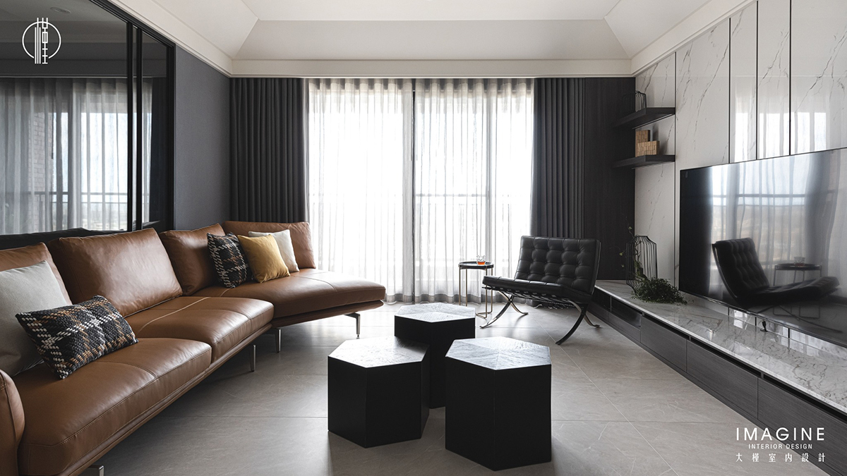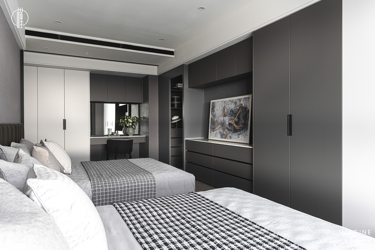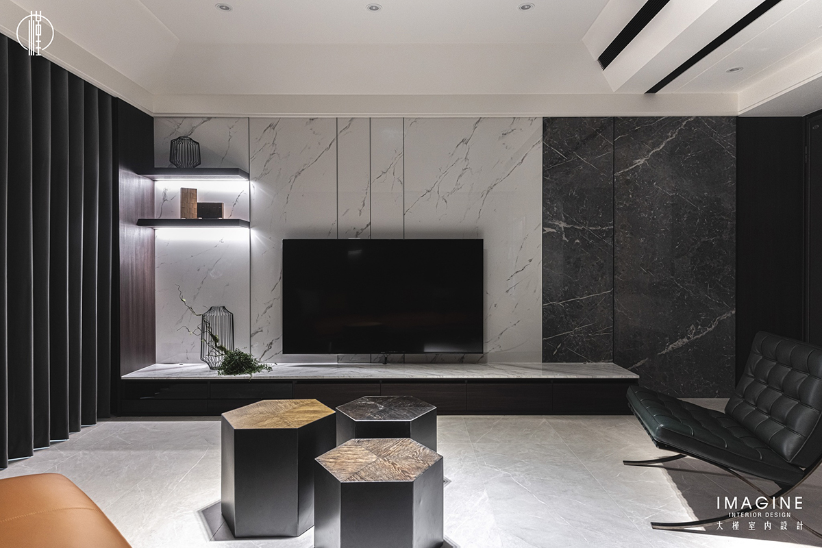黑白灰色調的無色系運用,讓空間出現深度的氣質。