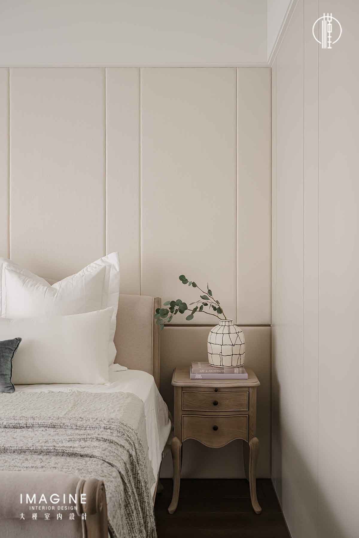素雅白的牆面,歐式古典大床和溫暖木色櫃體,集合成為恬淡明亮的臥室風格,靜雅好眠。